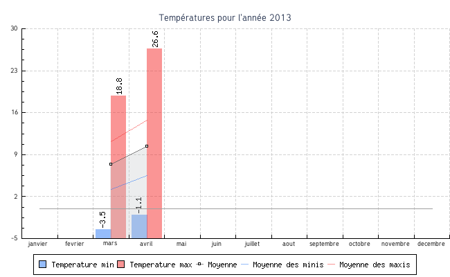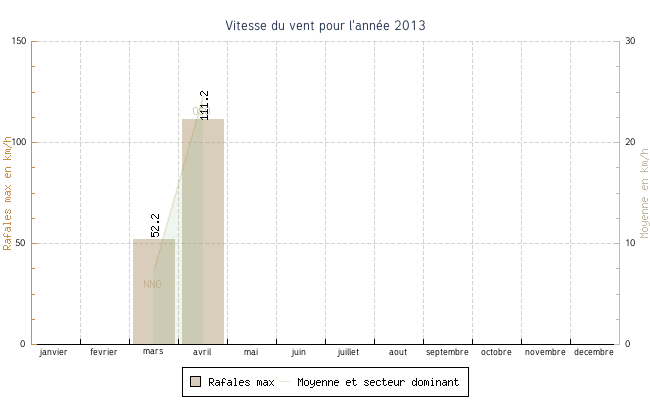 | avril | -1.1 °C | 5.5 °C | 26.6 °C | 14.8 °C | 10.4 °C | 24.6 km/h | 111.2 km/h | OSO |
